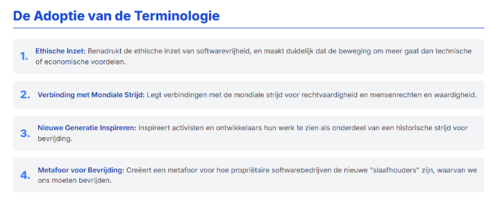 Het debat tussen vrije software en open source gaat niet alleen over woorden; het gaat over de wereld die we willen bouwen. De focus van de vrije-softwarebeweging op ethiek en vrijheid biedt een krachtige visie op technologie als instrument voor rechtvaardigheid en empowerment. Het pragmatisme van de open-sourcebeweging heeft veel praktische voordelen opgeleverd, maar loopt het risico de diepere waarden uit het oog te verliezen.