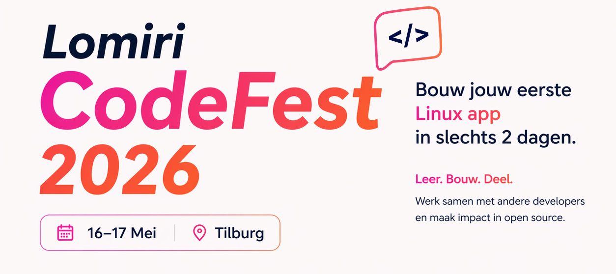 Registreer je nu gratis voor de Lomiri CodeFest van OS-SCi. Ontdek op 16 en 17 mei 2026 in Tilburg hoe jij kunt bijdragen aan de toekomst van open-source apps. Leer, bouw, ontmoet de community en zet jouw ideeën om in echte impact.